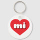 This keychain features a vibrant red heart containing the bold, white, rounded lower case letters mi, a playful abbreviation for Michigan, the Great Lakes state.