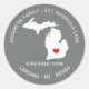 Unique State of MICHIGAN New home address label sticker set on a grey background with a red heart & aeroplane.