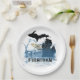 Michigan with big fish in water paper plate
