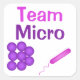 Show your microbiology pride with a Team Micro sticker done in gram negative pink and gram positive purple. Of course there are gram positive cocci in clusters and a gram negative rod with flagella. Especially appropriate for Lab Week.