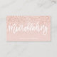 An elegant modern, stylish microblading specialist business card with elegant modern white hand lettering style typography on a faux rose gold glitter sparkles and blush pink elegant background. all text is customisable, add your social media.