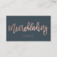 An elegant modern, stylish microblading artist business card with elegant script lettering style typography in faux rose gold foil on a trendy and elegant charcoal background.