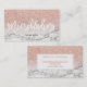 An elegant modern, stylish microblading eyebrows business card with elegant script hand lettering style typography in white on a faux rose gold pink glitter ombre on modern white marble background. If you need any customisation, don't hesitate in contacting me.
