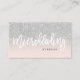 Microblading typography silver glitter blush pink business card
