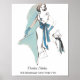 5 star quality poster with vintage, mid-century, ladies fashion sketch by Creators Studio Broadway New York City. This poster depicts the glamourous fashion of the early 1960's with it's turquoise and teal colours yet, works well with today's minimalist decor with it's touch of black on white background.