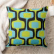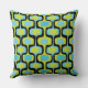 Mid-Century Aqua Chartreuse & Black Retro Pattern Cushion