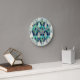 Mid Century Atomic Drops Blue Green Pattern Round Clock