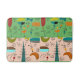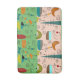 Atomic Era Inspired bath mat with rectangles, lines, half moon shapes in colours relevant to the time period.