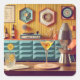 Mid Century Atomic Retro Futuristic Party Room Square Sticker