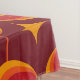 This is elegant classic mid century modern atomic starbursts on vintage circles in orange, tangerine and red on burgundy background. It's great looking tablecloth for mid century dining setups