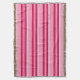 Classic, Mid-Century Modern awning stripes in Soft, blended colours, with a centre trellis pattern accent stripe, in medium and pale pink with deep fuchsia pink and burgundy wine accents