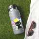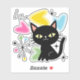 Colourful abstract Mid Century style illustration with black cat, black stars and colourful geometric shapes decoration on white background