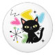 Colourful abstract Mid Century style illustration with black cat, black stars and colourful geometric shapes decoration on white background