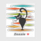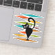 Colourful abstract Mid Century style illustration with black cat and colourful rhombuses decoration on white background