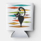 Colourful abstract Mid Century style illustration with black cat and colourful rhombuses decoration on white background
