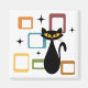 Colourful abstract Mid Century style illustration with black cat, black stars and colourful cubes decoration on white background. You can add your name/monogram to personalise the item.