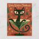 Mid Century Black Cat Merry Martini Christmas Postcard