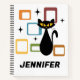 Colourful abstract Mid Century style illustration with black cat, black stars and colourful cubes decoration on white background. You can add your name/monogram to personalise the item.