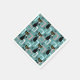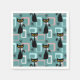 Colourful abstract Mid Century style pattern with black cat, black stars and colourful (blue, white, pink) cubes decoration on turquoise background for every cat lover, cat mum and cat dad.