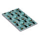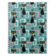 Colourful abstract Mid Century style pattern with black cat, black stars and colourful (blue, white, pink) cubes decoration on turquoise background for every cat lover, cat mum and cat dad.