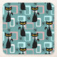 Mid Century black cat pattern Square Paper Coaster