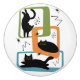 Colourful abstract Mid Century style illustration with black cats, black stars and colourful cubes decoration on white background