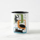 Colourful abstract Mid Century style illustration with black cats, black stars and colourful cubes decoration on white background