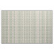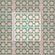 Mid century design pattern cotton fabric. Blush pink background with a geometric pattern print in sage green and a matt blue.