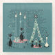 Mid Century Cat Family Holiday ©studioxtine Glass Coaster