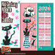 Mid-Century Cats Calendar Kitchen Towel Pink + Aqu