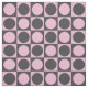 Modern abstract chequerboard design of circles and squares in charcoal grey / grey and pale ice pink