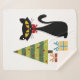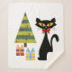Colourful abstract Mid Century style illustration with black cat, Christmas tree and Christmas gifts decoration