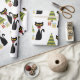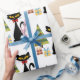 Colorful abstract Mid Century style illustration with black cat, Christmas tree and Christmas gifts decoration