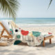 Elevate your beach experience with a sleek and modern beach towel featuring elegant mid-century abstract geometric patterns in a seamless design. Optional custom monogram.