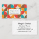 Make a bold first impression with this custom business card featuring a mid-century modern abstract pattern of half circles in vibrant orange, red, teal, and brown. Inspired by retro 1950s design, this geometric layout adds a stylish, creative edge to your professional identity. You can change name and details using personalise button