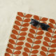 Beach towel in a Mid-Century Modern Danish inspired textile pattern of stylised leaves - rust brown / terracotta accented with chocolate brown, on a patterned, beige and cream background