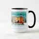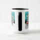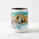Mid Century Decorating Christmas Mug. This scene, from one of our most popular Christmas cards, shows all the excitement of a mid-century modern house being decorated for the Christmas Holidays. A family is joyfully working to deck the halls of this folded plate roof house, a mid century icon, completely furnished with classic MCM furniture and an aluminium tree. It will take you back to a 1950s Christmas.