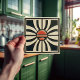 This exquisite mid-century modern ceramic tile is a loving homage to the time-honoured Arts and Crafts movement. Expertly crafted in our Barcelona workshop, it features abstract symmetrical shapes and imitates the captivating allure of mid-century modern faux relief tiles. The symmetrical designs echo a harmonious balance, the ideal expression of abstract aesthetics of mid-century modernism.