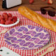 Mid Century Geometric Pink Purple Pattern Paper Plate
