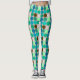 Leggings in a Mid-Century Modern geometric print of giant dots, in a grid of nine coordinating colours - shades of turquoise, peacock, seafoam green, mint, chocolate brown and off-white, on a light silver grey / grey background