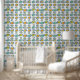 Add a pop of colour to your walls with this fabulous retro mid century wallpaper. It features the bright and bold colours of turquoise blue, avocado green, orange, tan, and blue.