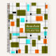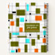 Mid century modern colour combination of blocks in olive, orange and aqua with a retro grid pattern. Atomic!