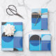 Elevate your gift-giving with this mid-century modern wrapping paper featuring bold circles and half circles in blue, turquoise, black, and white. The retro geometric design brings a stylish touch to birthdays, holidays, weddings, and special occasions, making every gift stand out with timeless mod flair.