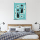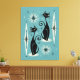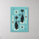 Mid Century Meow Retro Atomic Cats on Blue Canvas Print
