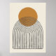 A minimal abstract art with a mid century geometric design in mustard and black on a off white background. A perfect accessory for a contemporary home.
