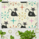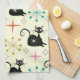 Mid Century Mod Atomic Cats with Retro Starbursts Tea Towel