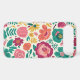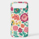 A cheerful and bold seamless pattern featuring stylized, graphic flowers and leaves set against a bright, creamy-white background. The design uses a punchy, retro color palette of fuchsia pink, deep teal, sunny orange, and spring green. The flowers are chunky and abstract, including roses, tulips, and daisies, reminiscent of block prints or folk art from the 1960s and 70s. This happy, vibrant, and fun design brings a lively, playful, and vintage touch to your phone case.