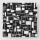 Eye-catching, wall clock, with unique, geometric, mid-century modern, design in neutral, black, white and grey.