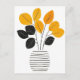 Sunny golden petals emerge from a bright white-striped vase on bold cobalt blue—warm, cheerful, and clean.