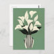 Lush emerald blooms in a pale cream-striped vase bloom brightly on a sandy neutral tone—vintage garden vibes.